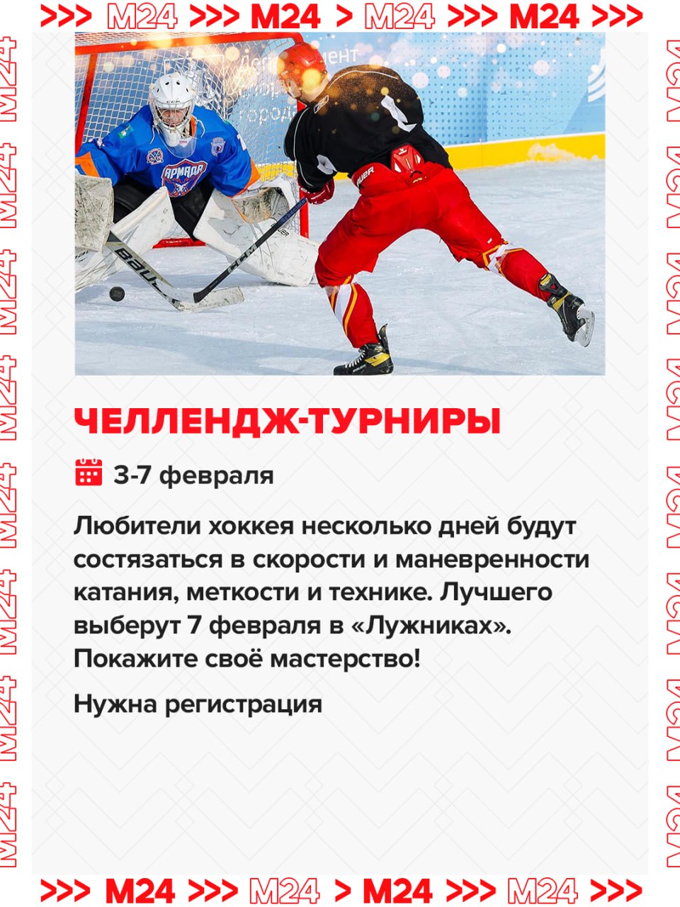 Сыграть за любимую команду на льду «Лужников» и забросить шайбу мечты. Хоккейные фанаты, ничего не планируйте на начало февраля — вас ждёт Московская неделя хоккея.