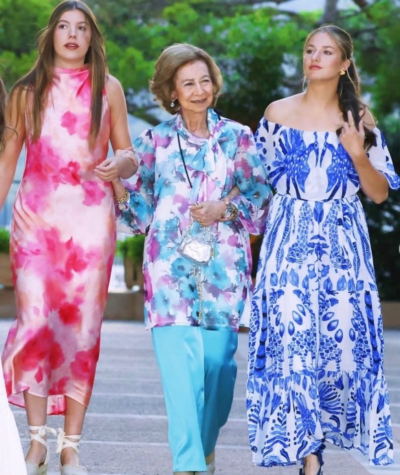 Две внучки и бабушка показывают, что стиль может быть одинаковым без копирования моды: яркие узоры нарядов внучек перекликаются с лёгким комплектом бабушки в схожей палитре. Налицо простая мысль: близкие не обязательно должны быть одинаковыми, чтобы выглядеть едино.