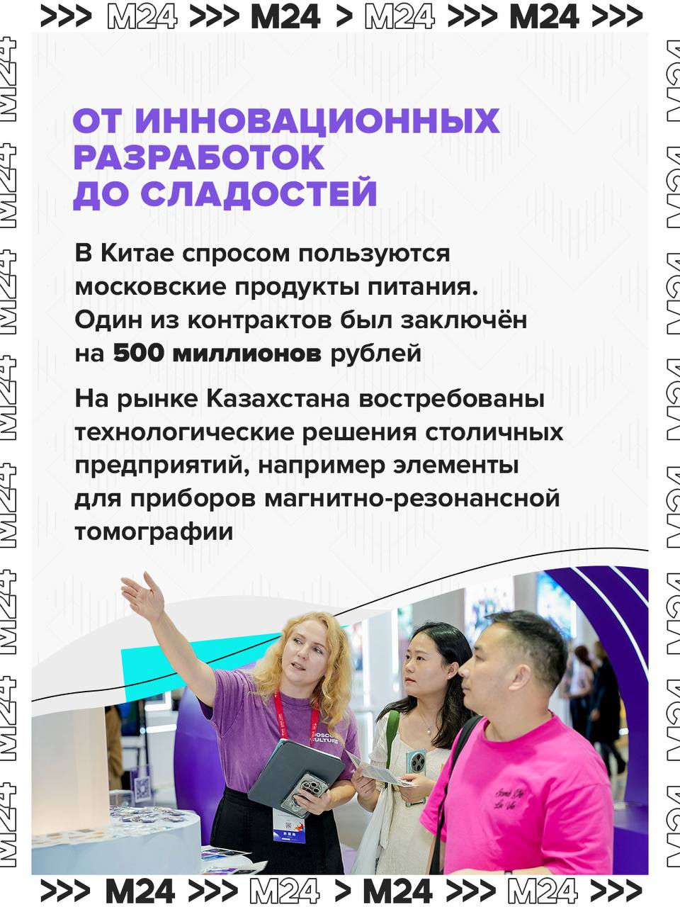 За рубежом востребовано всё: от высоких технологий и видеоигр до продуктов питания, театральных проектов и туристических программ. По словам заммэра Натальи Сергуниной, Москва уверенно продвигает на мировой рынок технологии, креатив и гостеприимство — и спрос на это растёт.