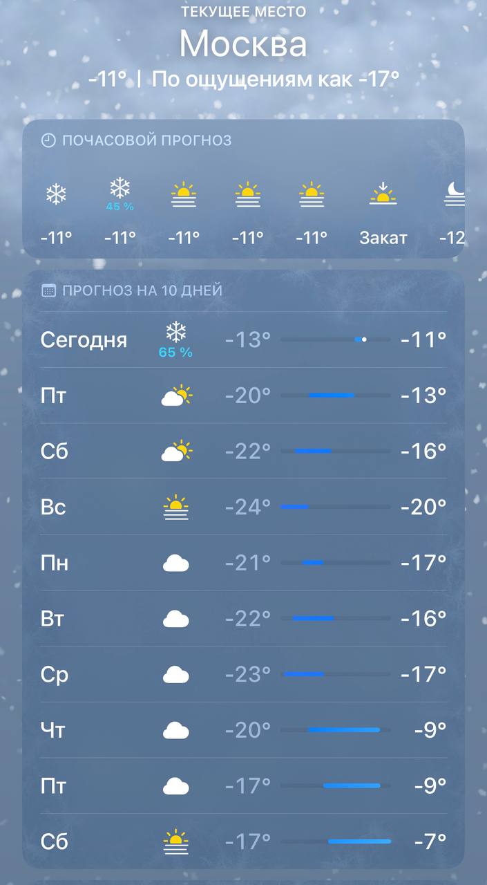 Аномальные морозы ожидаются в Москве с 30 января по 3 февраля
