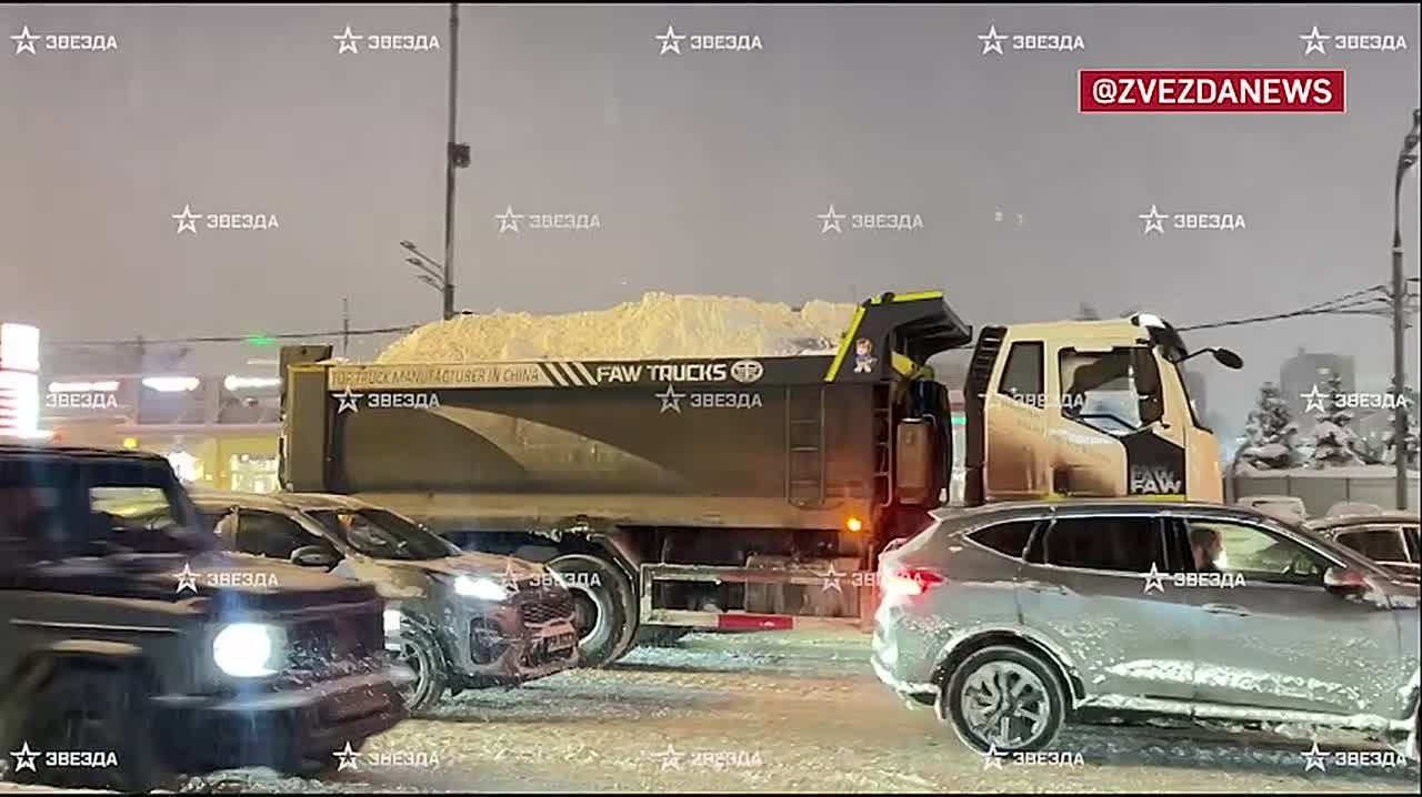 Девятибалльные пробки в Москве второй день подряд. Столица плотно стоит из-за снегопада, который должен закончиться к полуночи.