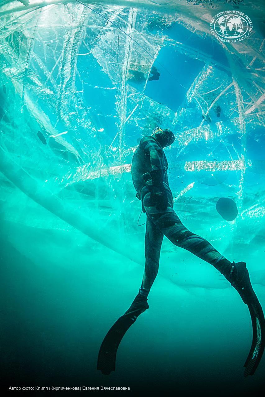 «В этом году я на Байкале ныряла первый раз. Но цвет воды, торосы внизу, сила и энергетика озера поразили в самое сердце. Однако без человека льды на кадрах выглядели довольно пусто и скучно, поэтому я решила добавить им компанию».