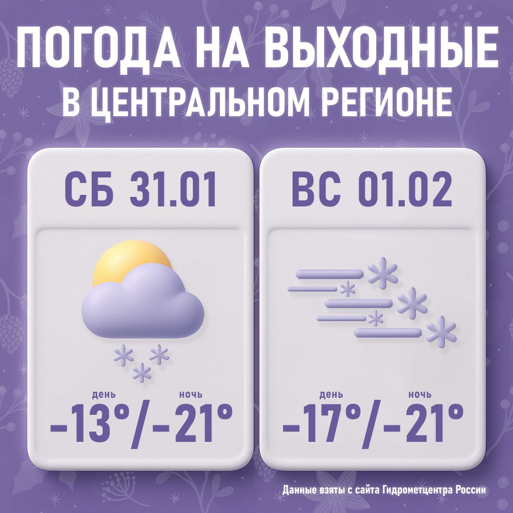 В эти зимние выходные в Москве будет облачная погода с прояснениями. Столбики термометров не опустятся ниже -23°C.