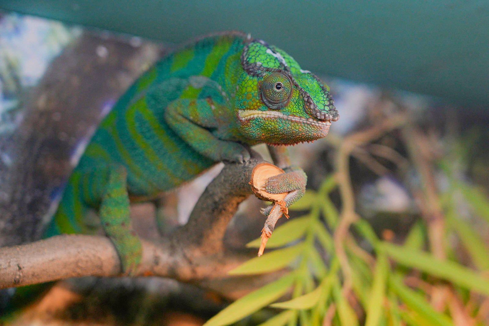 Новые жители Московского зоопарка — полосатый варан и пантеровый хамелеон. Эти виды редко встречаются в коллекциях зоопарков.