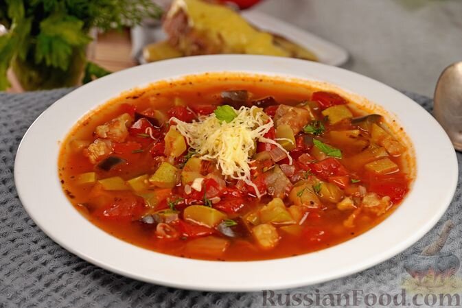 - Суп "Рататуй". Это овощное лакомство, напоминающее рагу, включает простые ингредиенты: помидоры, кабачки, баклажаны и ароматные свежие травы. Один кастрюльный способ готовки делает его ещё более удобным. Гренки с пряным сыром отлично дополнят этот вкусный суп.