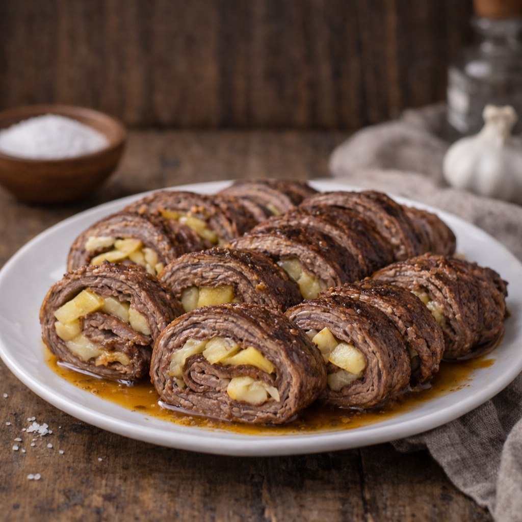 В прохладные осенние вечера, когда воздух наполняется ароматами уюта, появляется желание порадовать себя и близких чем-то особенным. Представьте, как нежный запах жареного говядины и сладкой груши окутывает ваш дом, создавая атмосферу тепла и заботы. Этот рулет — не просто блюдо, а настоящая симфония вкусов, где сочное мясо, ароматные фрукты и пикантный сыр гармонично переплетаются.