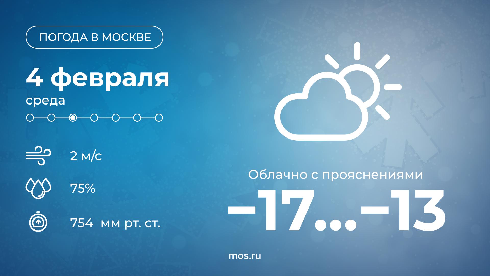 Доброе утро! Сегодня в столице будет облачно с прояснениями. Столбики термометров днем покажут от 17 до 13 °С. Одевайтесь теплее!