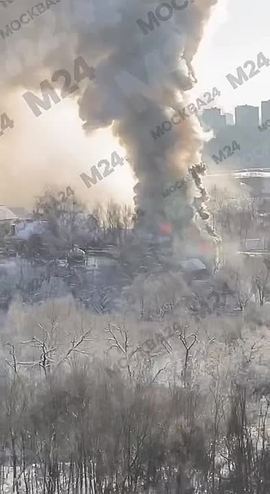 Мощный пожар в районе Путилково. Горит частный дом около ЖК «Митинский лес».