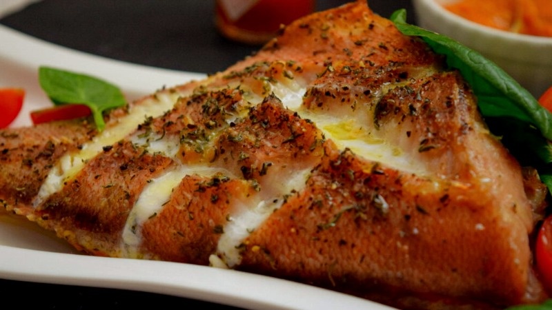 Сочный окунь в пикантном соусе, запеченный в духовке