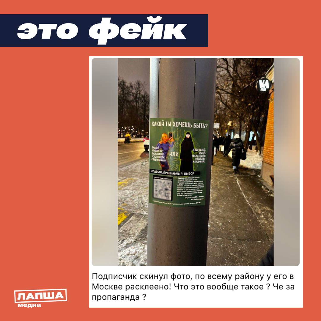Однако это старый фейк, который «Лапша Медиа» разоблачила еще в декабре 2024 года. Тогда ДУМ РФ опроверг существование подобных постеров в столице.
