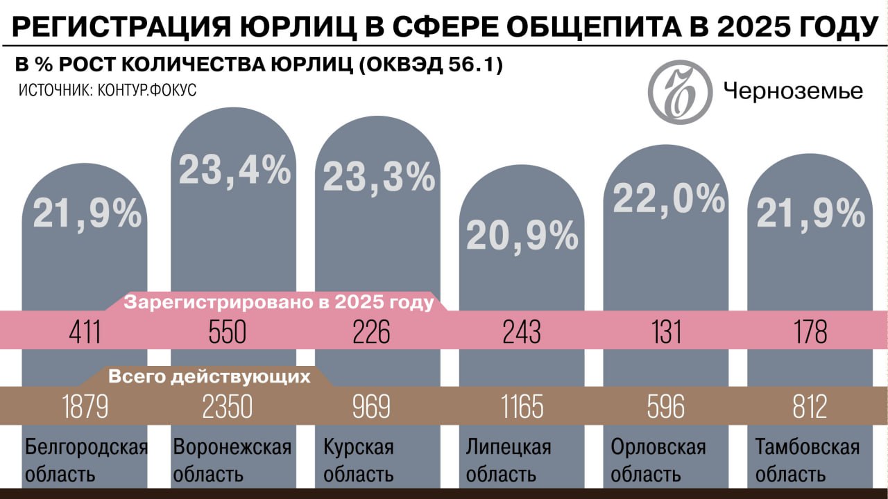 Общепит приходит на время еды: в Черноземье в 2025 году зарегистрировали на 20% больше юрлиц для ресторанов и кафе