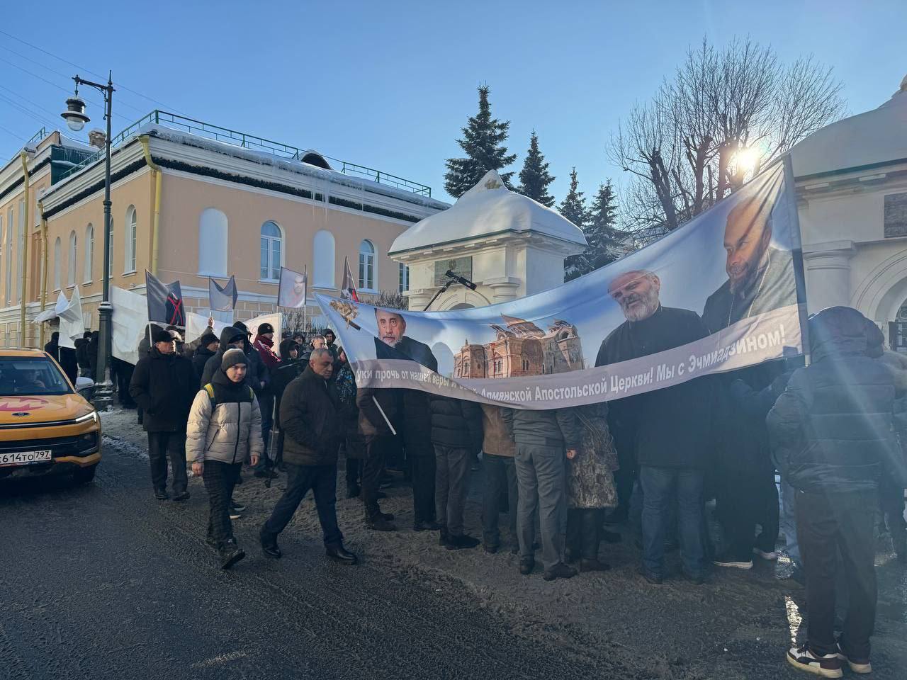 Армянская община в Москве вышла на акцию протеста против давления на Армянскую Апостольскую Церковь на родине.