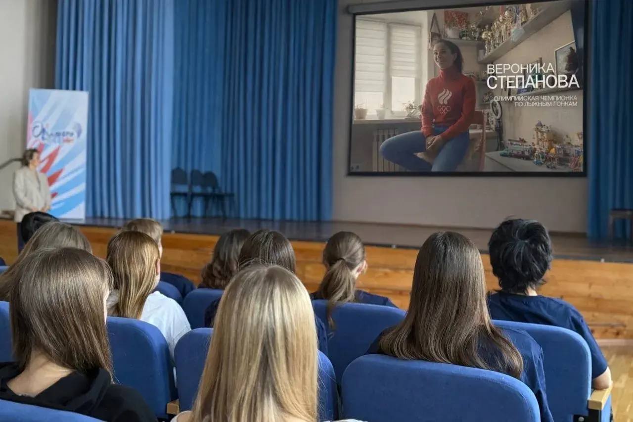 Ребятам показали документальный фильм о самой молодой российской чемпионке в истории лыжных гонок на Олимпийских играх Пекина – Веронике Степановой.