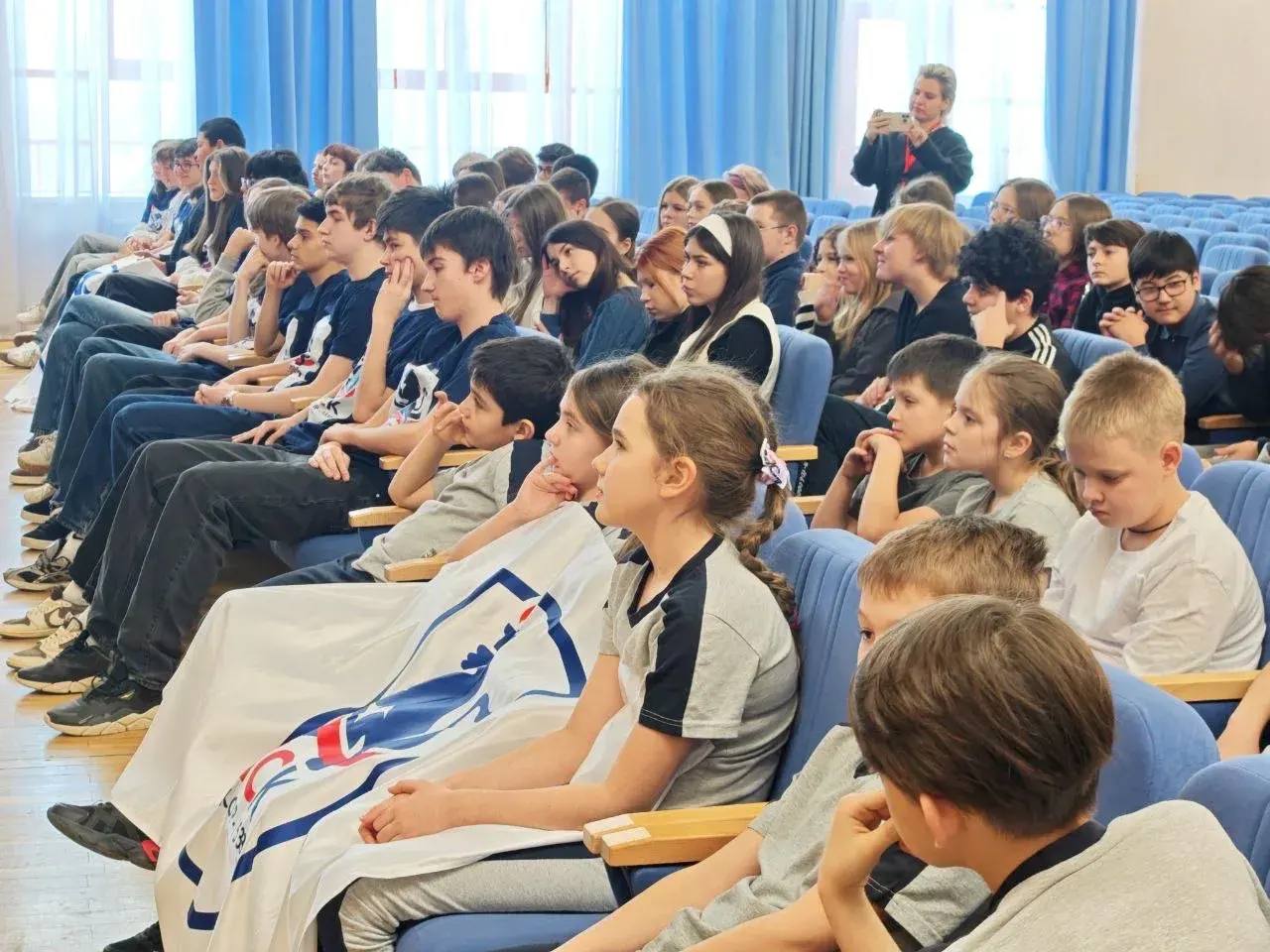 Фильмы показывают жизненный путь простых, но в тоже время великих людей, и я уверена, что для наших ребят эти фильмы станут стимулом, а их герои – примером.А еще перед просмотром мы успели пообщаться и устроить небольшую фотосессию. Успела рассказать о том, как найти свое любимое дело, посвящать себя ему без остатка, быть целеустремленными, настойчивыми и требовательными к себе – тогда результат, успех и победы обязательно придут.