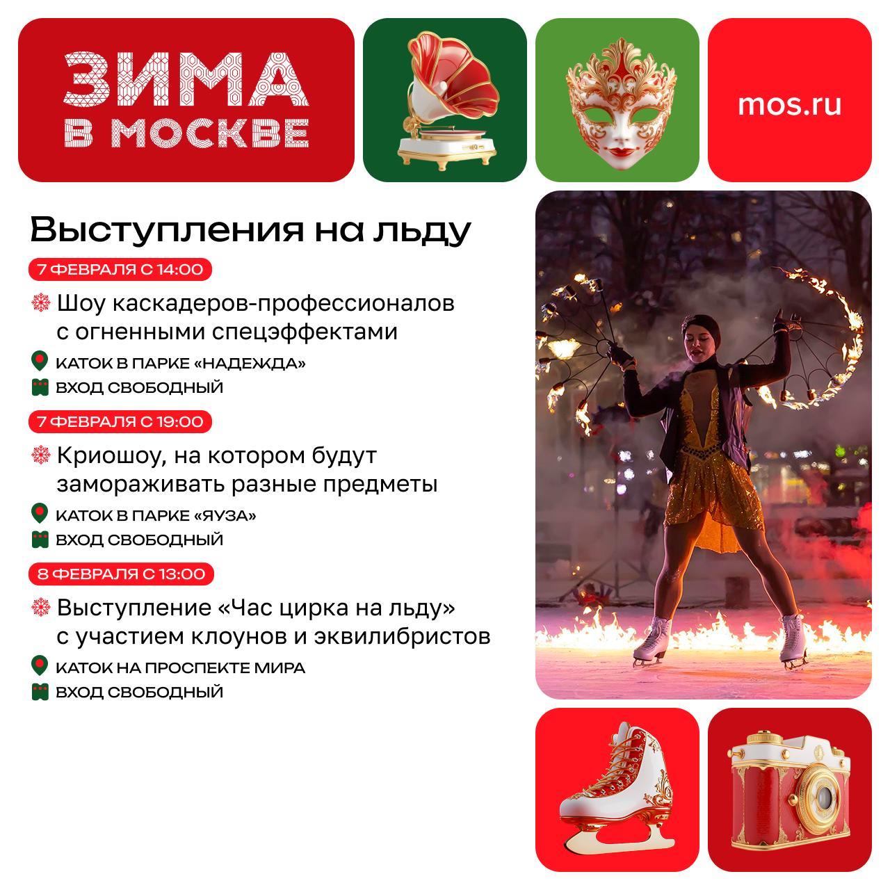 В эти выходные вам будет чем заняться! На площадках «Зимы в Москве» пройдут шоу, мастер-классы и соревнования. Подробности — в наших карточках.