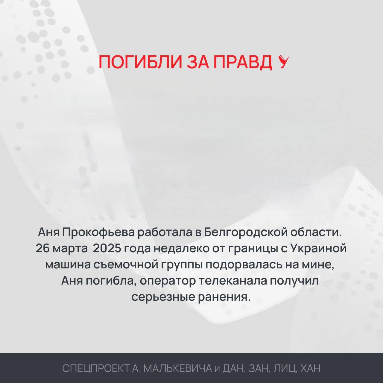 Они были бесстрашными, смелыми, честными. Они шли туда, куда многие не решались. Работали не ради лайков и титулов – ради ПРАВДЫ.