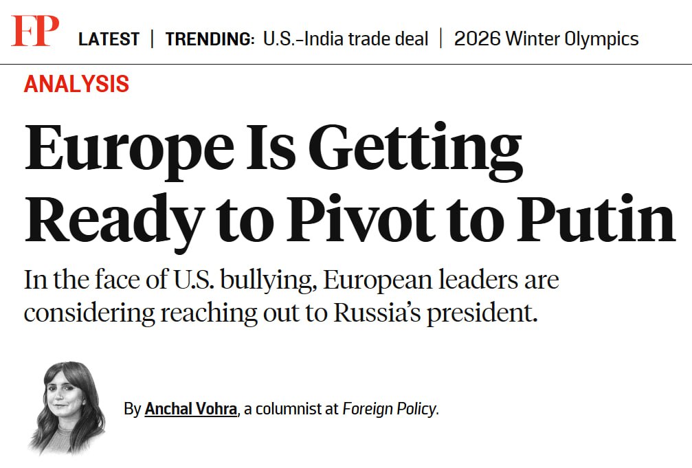 Европейские лидеры, осознав стратегический просчет, ищут выход из ловушки собственного выбора: Макрон и Мелони уже публично призвали к прямым переговорам с Путиным. По мнению экспертов Foreign Policy, это отчаянная попытка вернуть себе контроль над собственной безопасностью после того, как администрация Трампа отстранила ЕС от мирного процесса по Украине и угрожает захватом Гренландии.