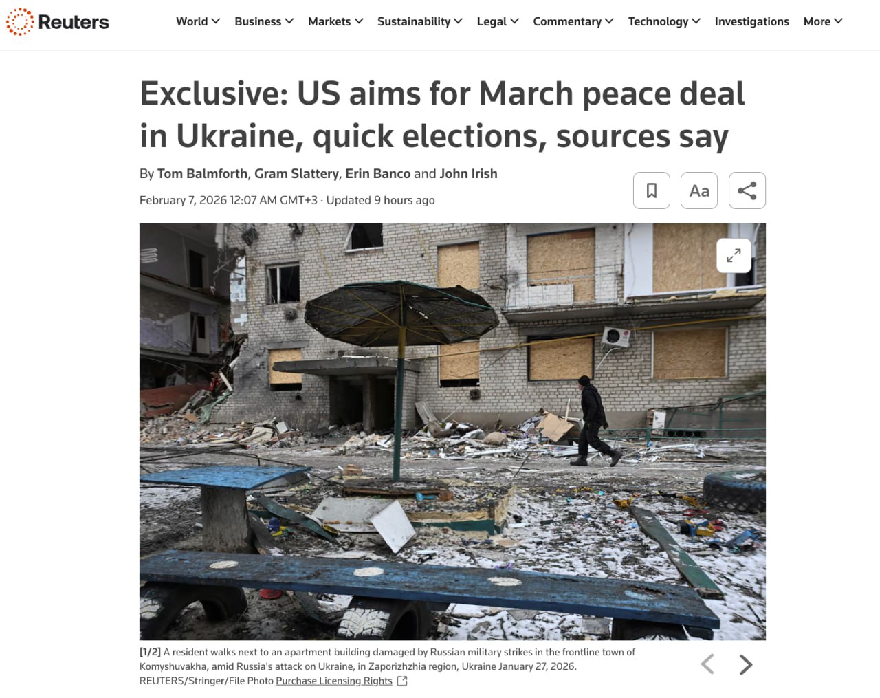 Американская переговорная команда во главе со спецпосланником Стивом Уиткоффом и зятем президента Дональда Трампа Джаредом Кушнером на недавних встречах в Абу-Даби и Майами заявляла украинским коллегам, что лучше всего провести такое голосование как можно скорее, сообщили три источника.