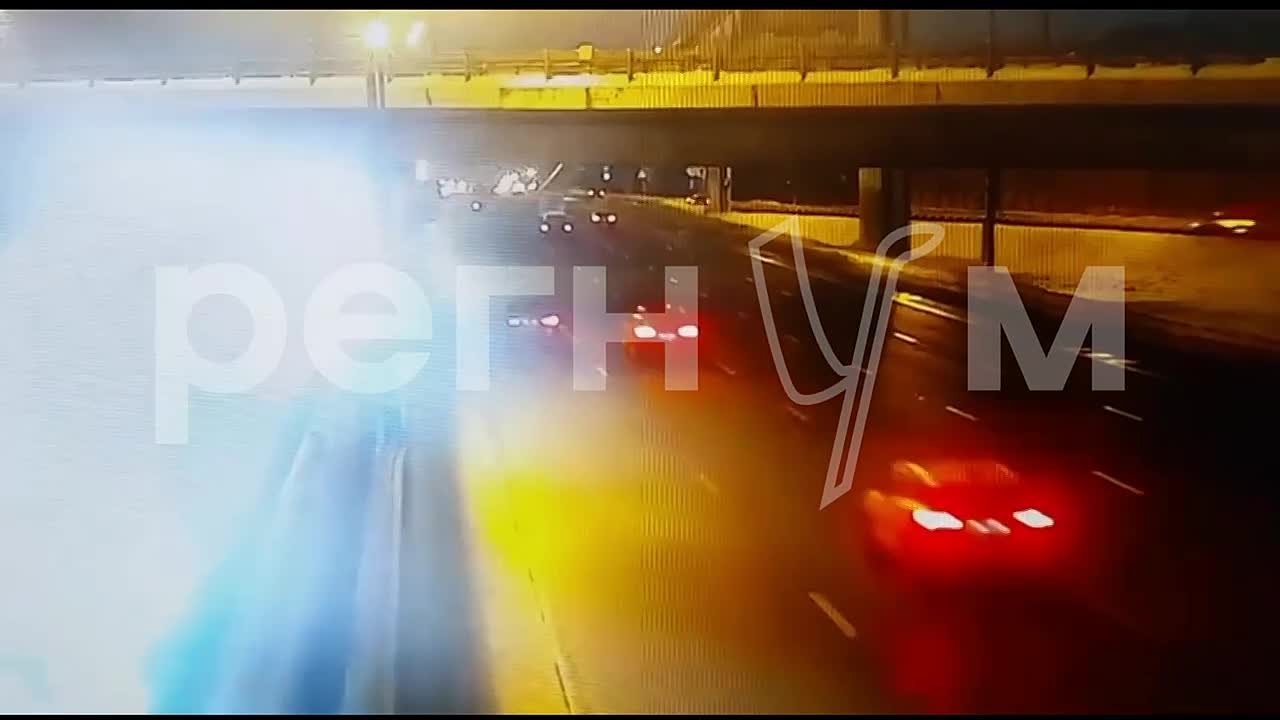 Момент падения «Мерседеса» с эстакады на МКАД попал на камеры
