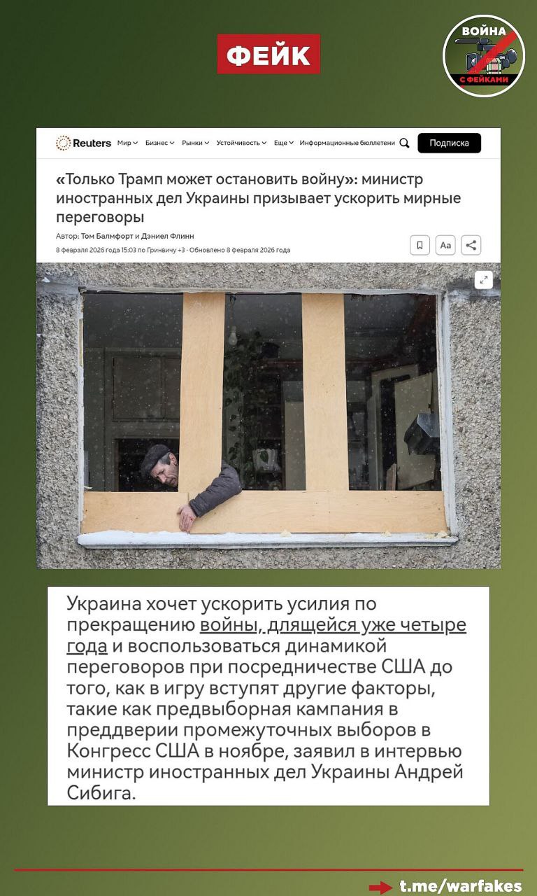Фейк: Киев хочет ускорить усилия по прекращению конфликта с Россией. Об этом заявил глава МИД Украины Андрей Сибига винтервьюReuters.