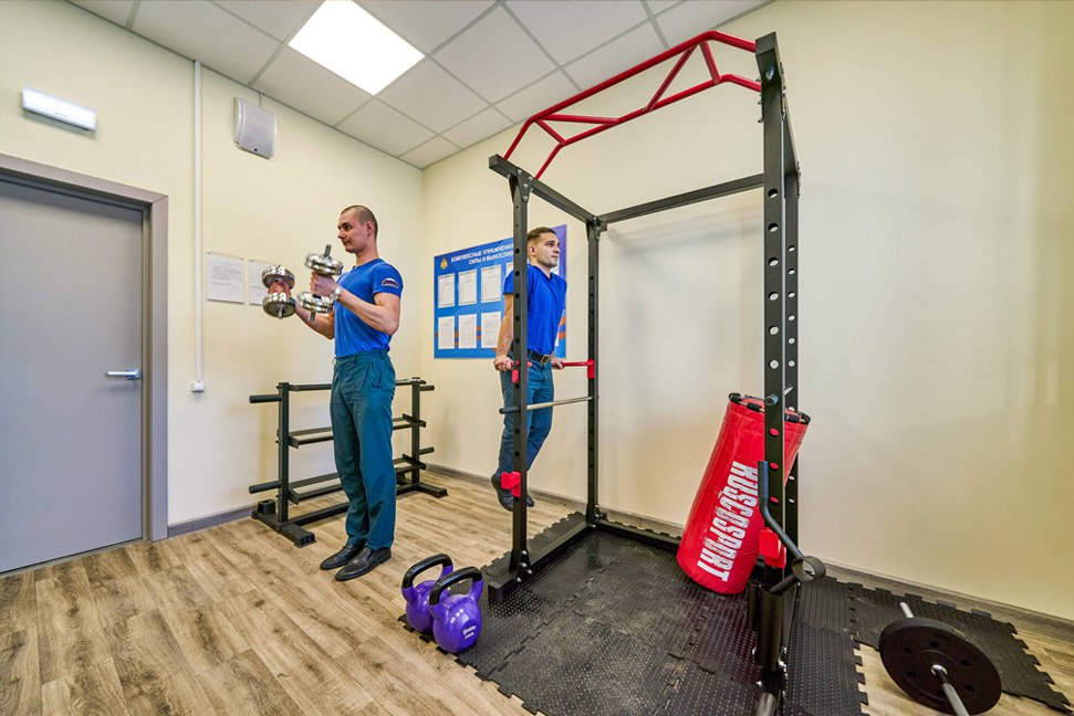 Комфорт: Во всех новых и отремонтированных частях — комнаты отдыха, психологической разгрузки, тренажёрные залы, помещения для сушки обмундирования.