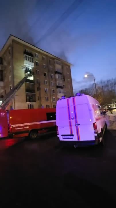 Мощный пожар бушует в многоэтажке в Пресненском районе Москвы.