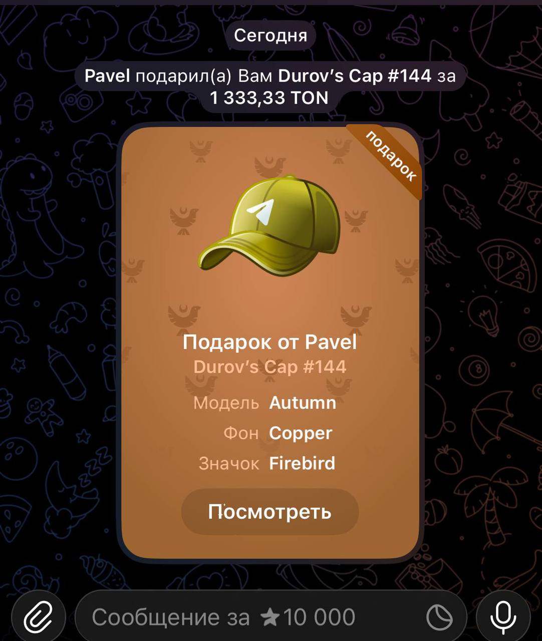 Парень по имени Михаил предлагал купить уникальную NFT-кепку ниже рыночной цены. В качестве доказательства связи с Дуровым скидывал кружок, на котором Павел в халате ведёт личные разговоры по видео и показывает кому-то накачанную грудь.