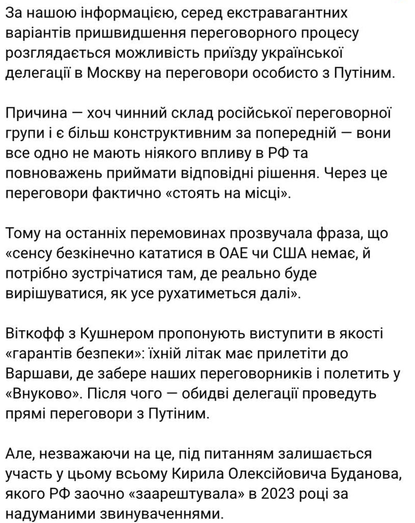 Информация представляется сомнительной и, вероятно, вброшена для прощупывания готовности к миру в украинском обществе. Ранее официальный Киев заявлял, что Москва не может быть площадкой для переговоров.