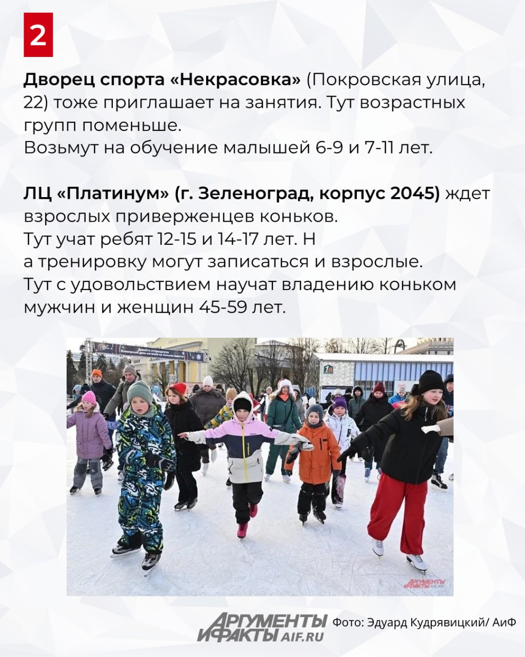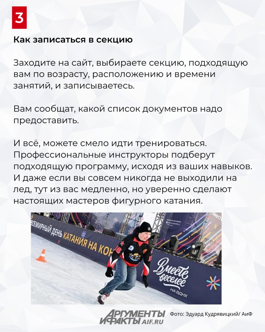 Хотите блистать на коньках, но пока не умеете? Записывайтесь в секцию адреса в карточках.