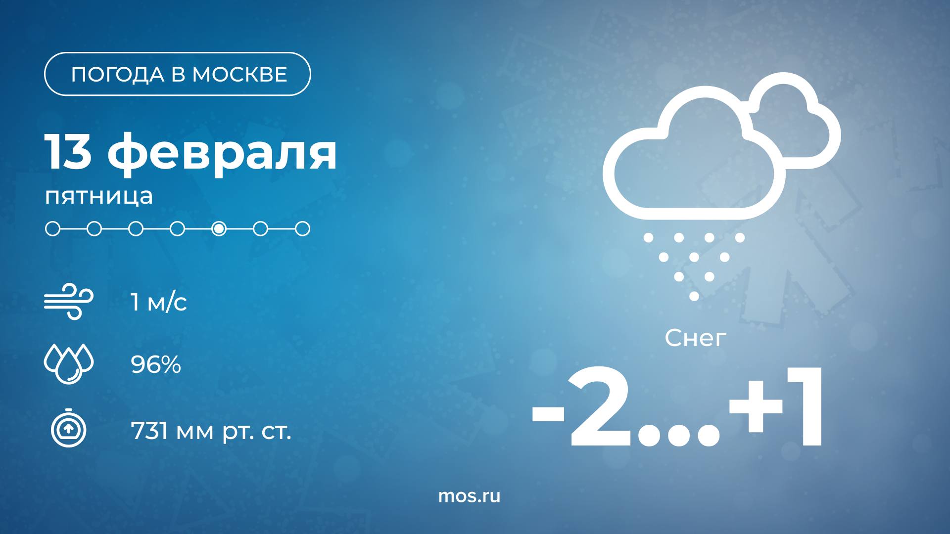 Доброе утро! Сегодня в Москве будет облачно, в течение дня будет идти снег. Столбики термометров покажут от 2 до +1 °С.