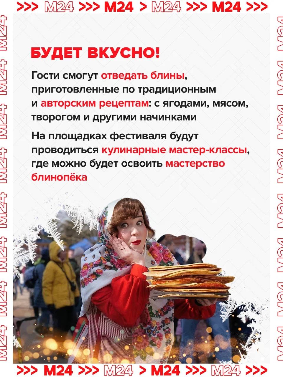 Концерты, спектакли, театрализованные представления, мастер-классы и, конечно, самые вкусные БЛИНЫ!