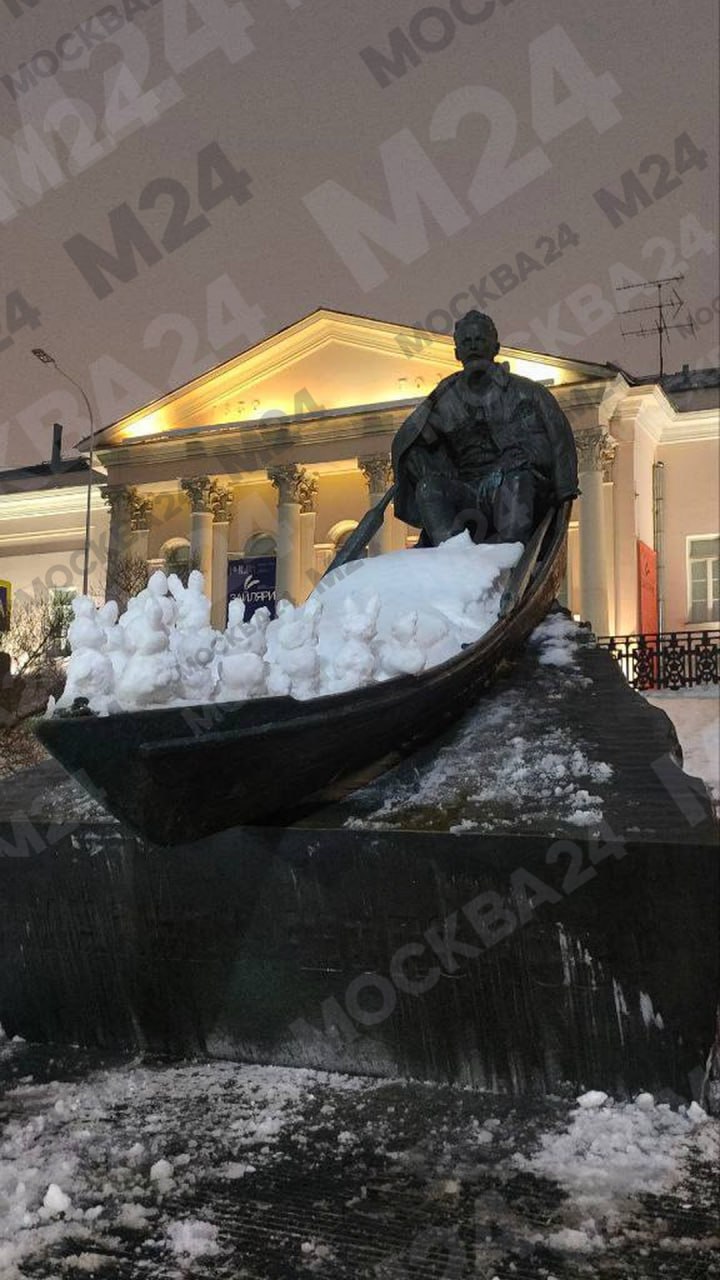 В Москве «открыли» новый памятник — Шолохов и компания снежных зайцев