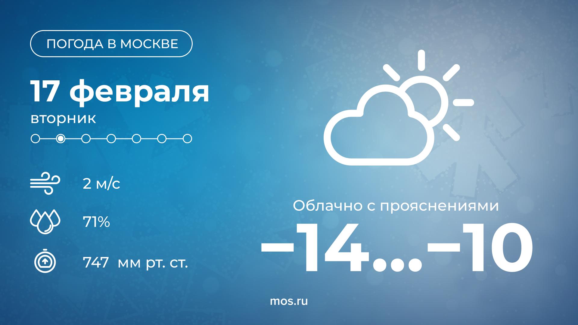 Доброе утро! Сегодня в Москве будет облачно с прояснениями. Столбики термометров днем покажут от 14 до 10 °С. Одевайтесь теплее!