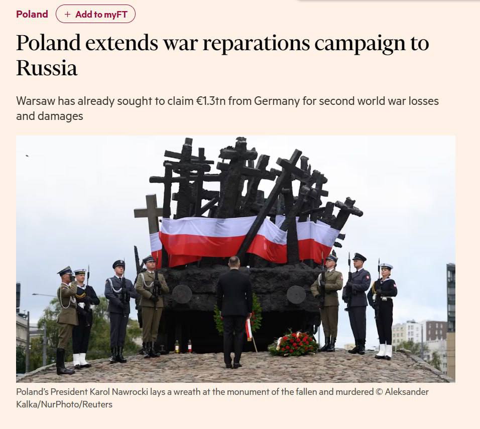 По данным Financial Times, Варшава собирается подать соответствующий иск против Москвы после некоего "расследования".