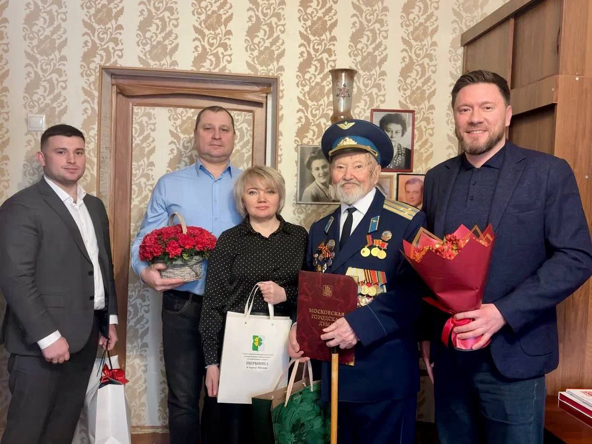 Председатель комиссии МГД по государственному строительству и местному самоуправлению Александр Козлов (фракция партии «Единая Россия») поздравил с вековым юбилеем ветерана Великой Отечественной войны, Почетного жителя района Щербинка Рифгата Тимирзяновича Гареева.