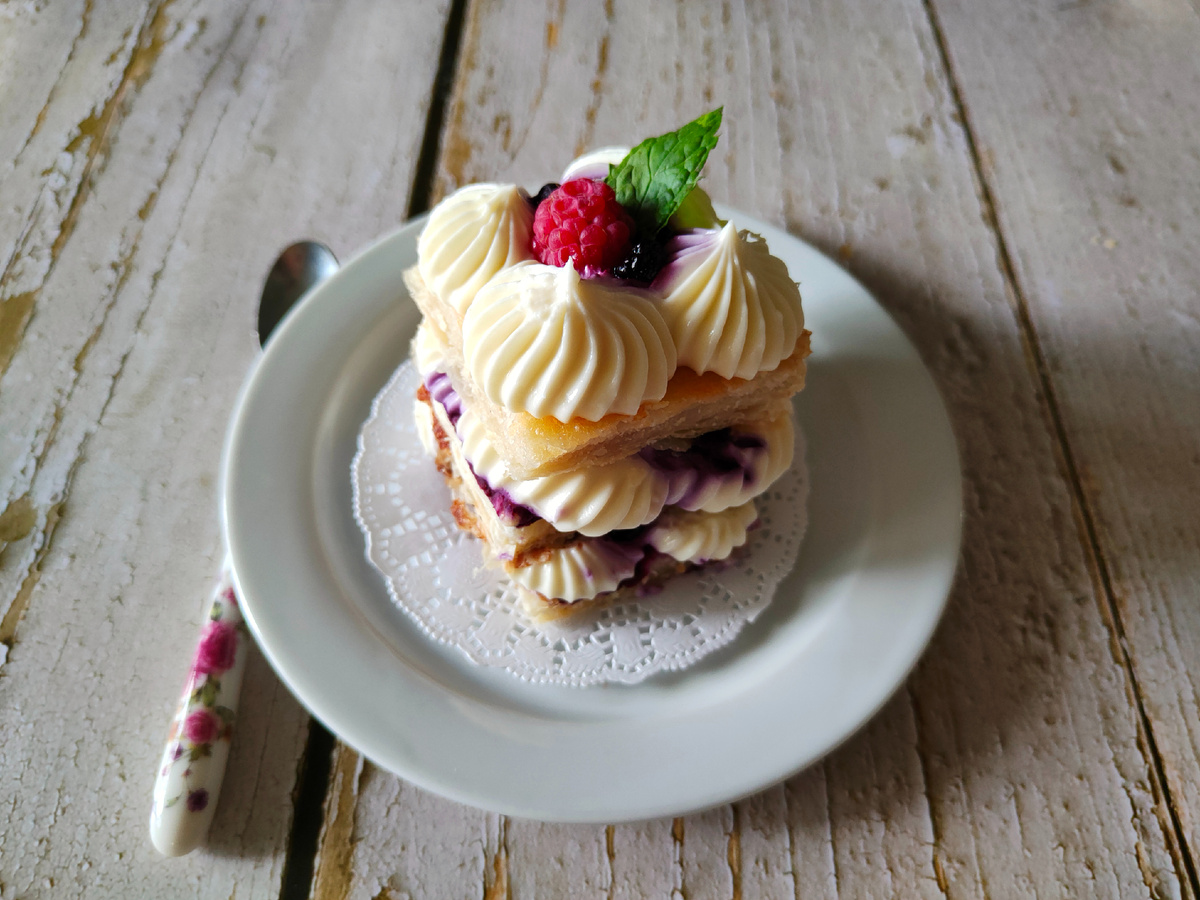 Пирожные мильфей можно приготовить по нескольким рецептам, и сегодня предлагается быстрейшая версия с кремом на основе творожного сыра и яркими ягодами малины и черники. Такой десерт радует не только своим вкусом, но и внешним видом.