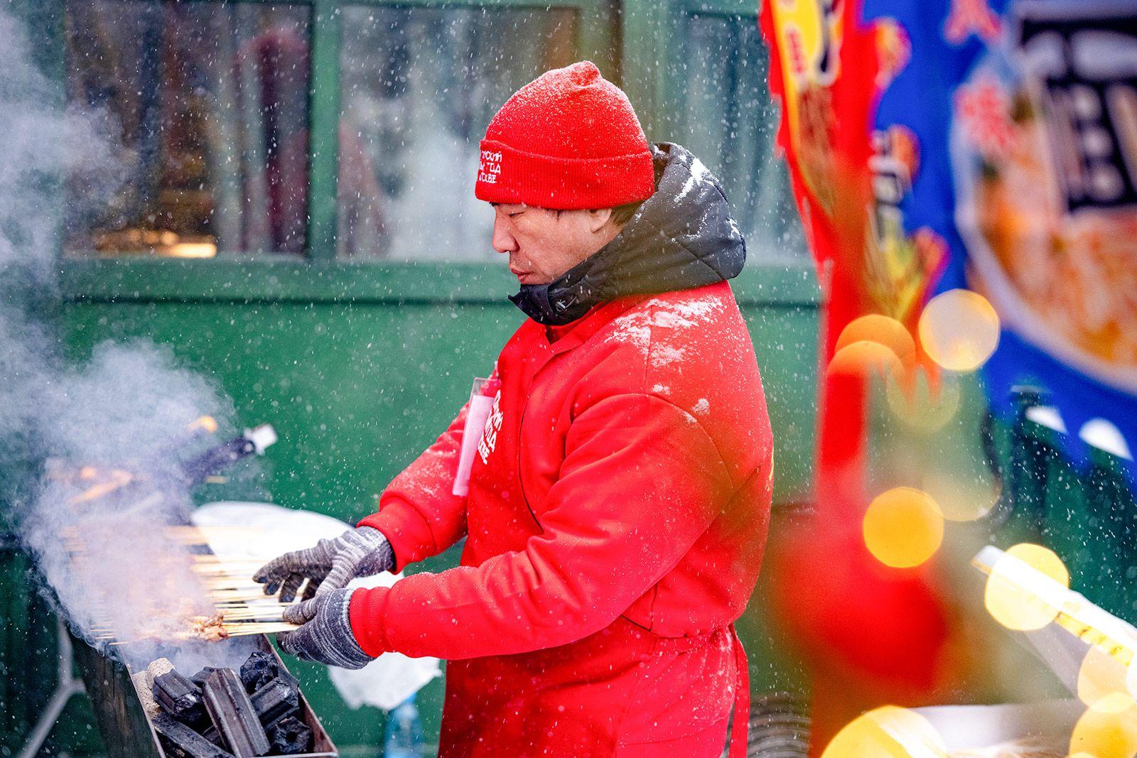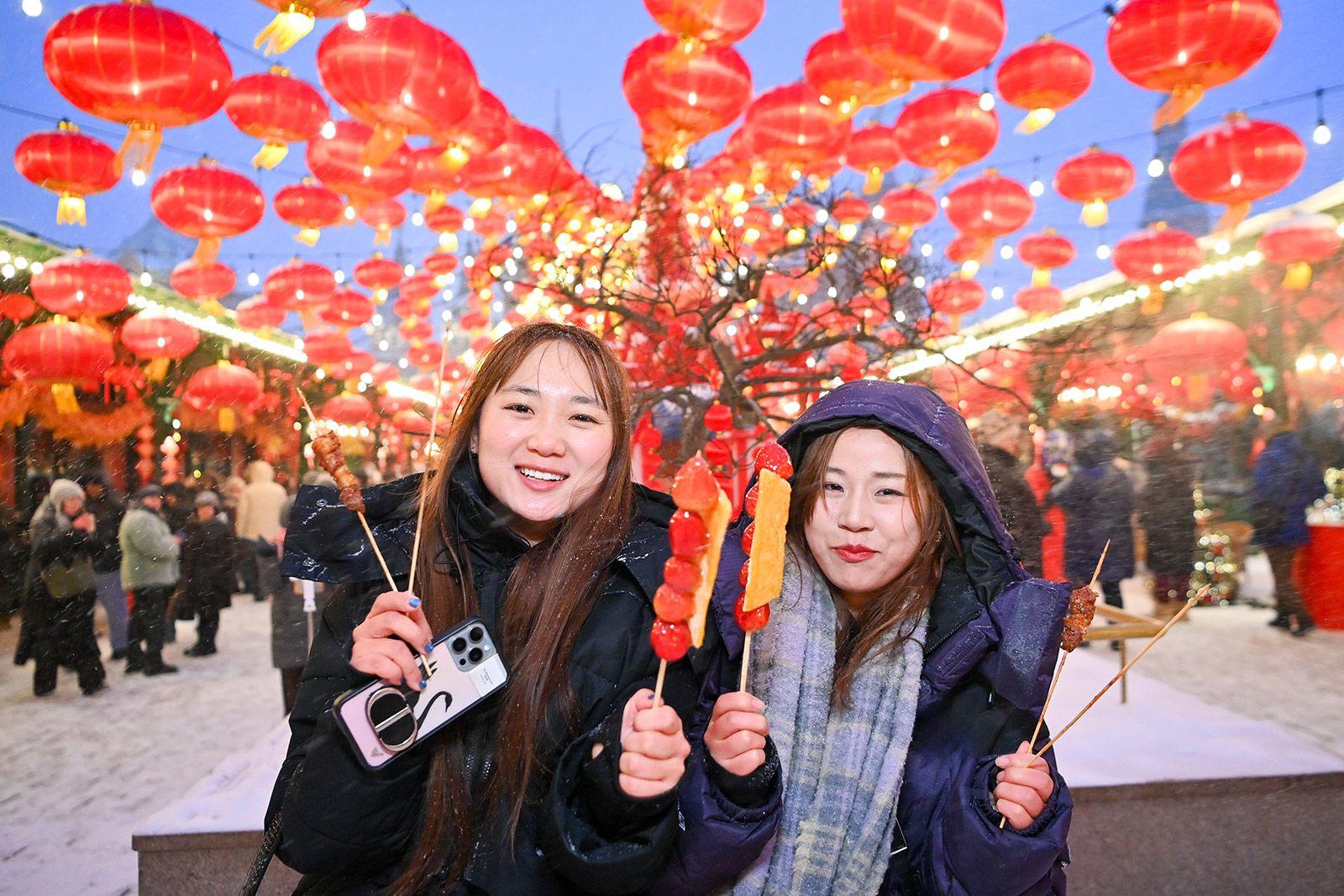 На Манежной площади гостям предлагают китайские шашлыки, утиный суп и рамен по-ланьчжоуски. На десерт — золотистые пончики ютяо и хрустящие гонконгские вафли, а еще танхулу —карамелизированные фрукты и ягоды на палочке.