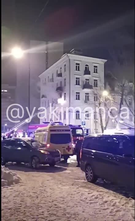 Три квартиры горят в жилом доме в центре Москвы, огонь распространился на деревянные перекрытия.
