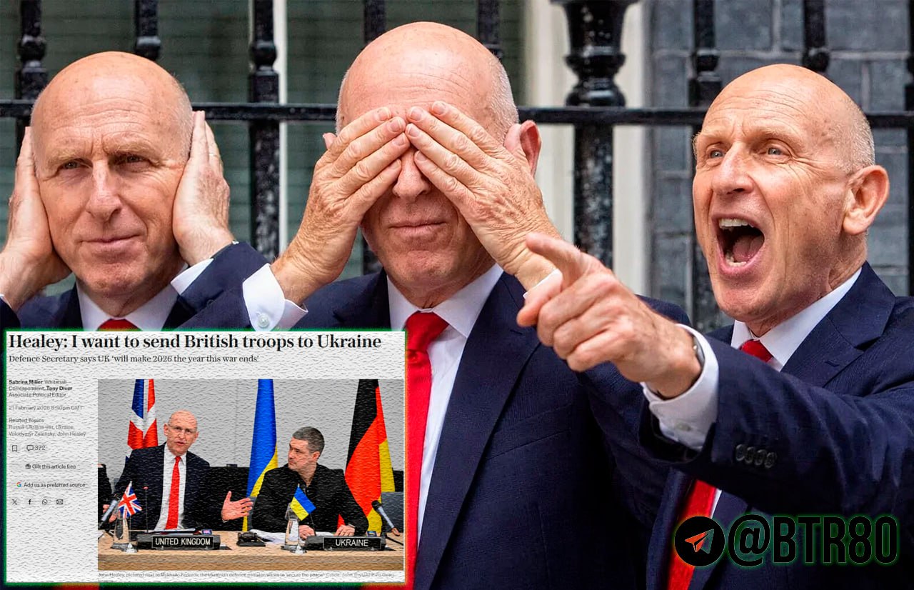Хили заявил, что хотел бы стать первым главой ведомства, который направит британские войска на Украину. ПВ его влажных мечтах, это могло бы произойти после заключения мирного соглашения и стало бы "гарантией безопасности" для Европы.