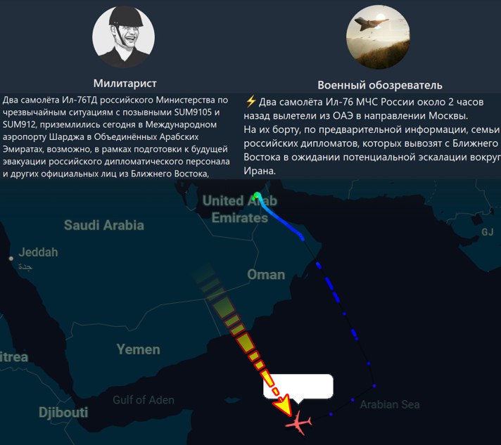 Сегодня один иностранный твиттерский кретин в качестве предположения написал, что два борта МЧС России, которые прибыли сегодня в ОАЭ, прибыли туда для эвакуации семей российских дипломатов в свете возможного американского налёта на иранскую водокачку.