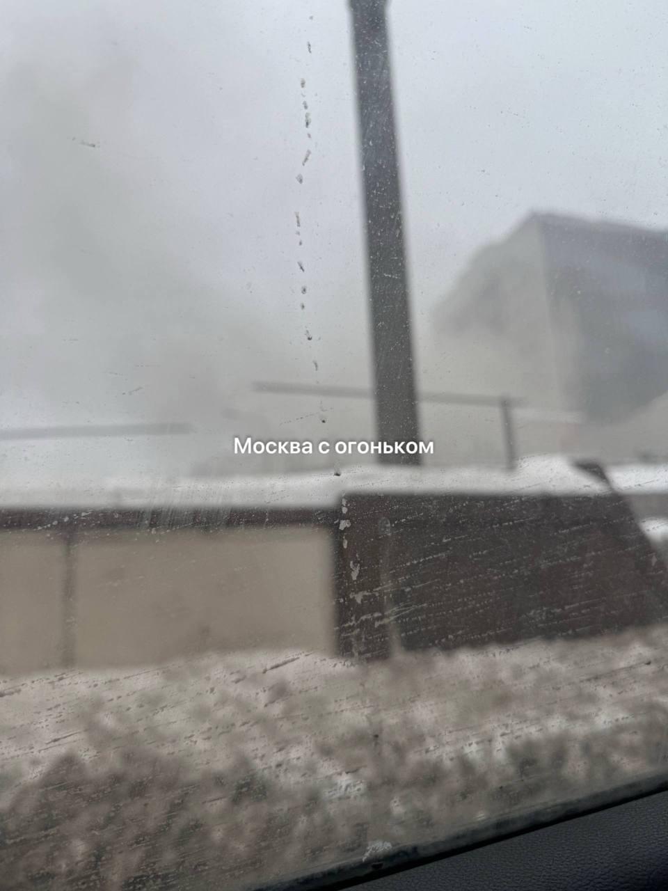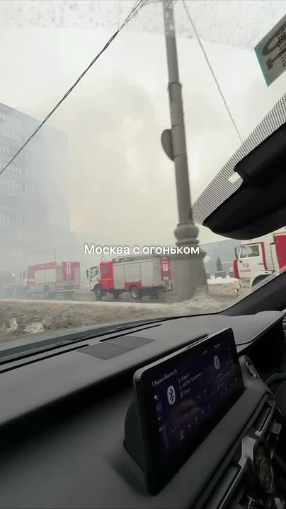 Административное здание полыхает на улице Образцова на северо-востоке Москвы