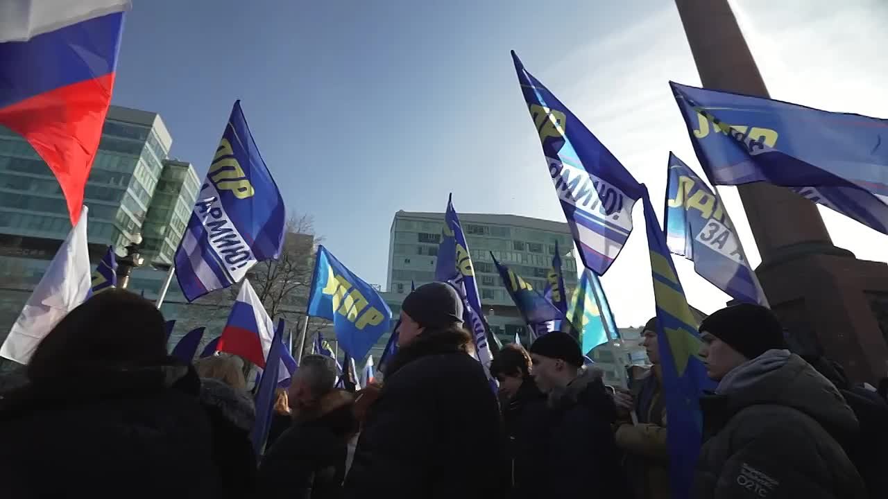 В честь защитников Отечества на Трубной площади в Москве провели митинг под лозунгом «Одна страна — одни гарантии и льготы для наших защитников и их семей!»