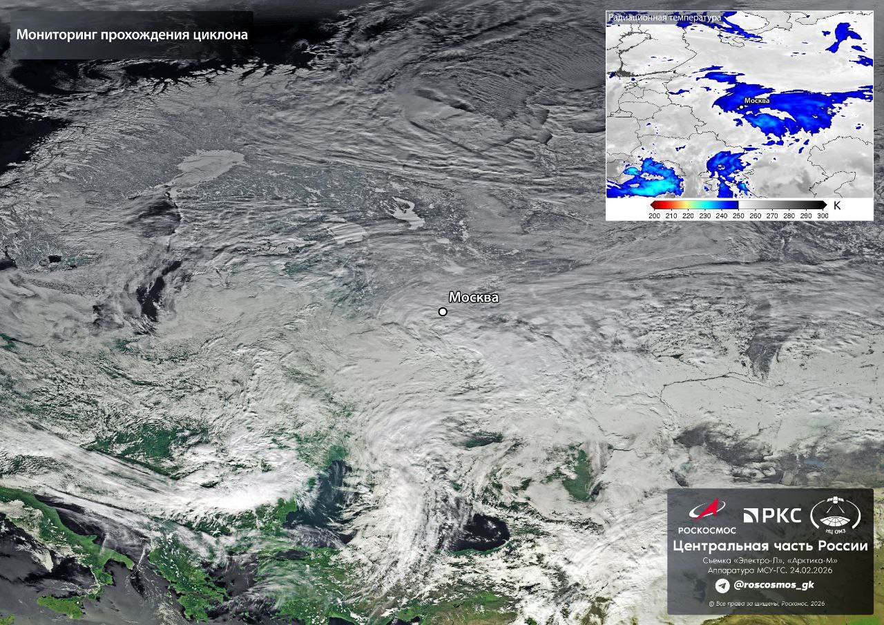 Роскосмос показал с орбиты, как выглядит циклон, принесший в столичный регион очередной снегопад.