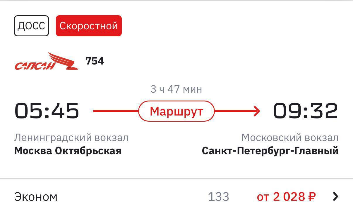 Например, билеты в эконом-класс «Сапсана» будут стоить от 2028 рублей. На сидячие места поездов «Аврора» — от 1200 рублей и в вагонах второго класса поездов «Невский экспресс» — от 960 рублей.
