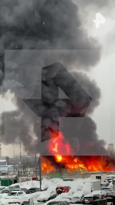 В металлическом ангаре на окраине Москвы разгорелся сильный пожар. Пострадавших нет, сообщили в МЧС.