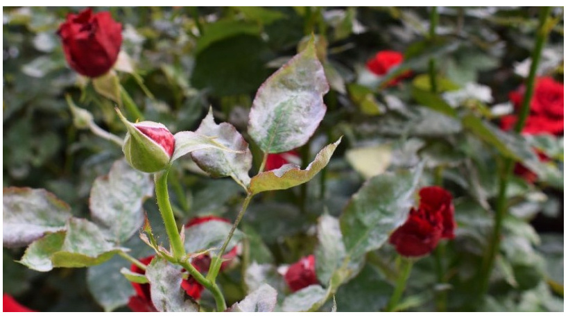 Мучнистая роса процветает в условиях повышенной влажности и температуре свыше +24°C. Споры грибка Sphaerotheca pannosa могут находиться на растениях, не проявляя себя до благоприятных условий.