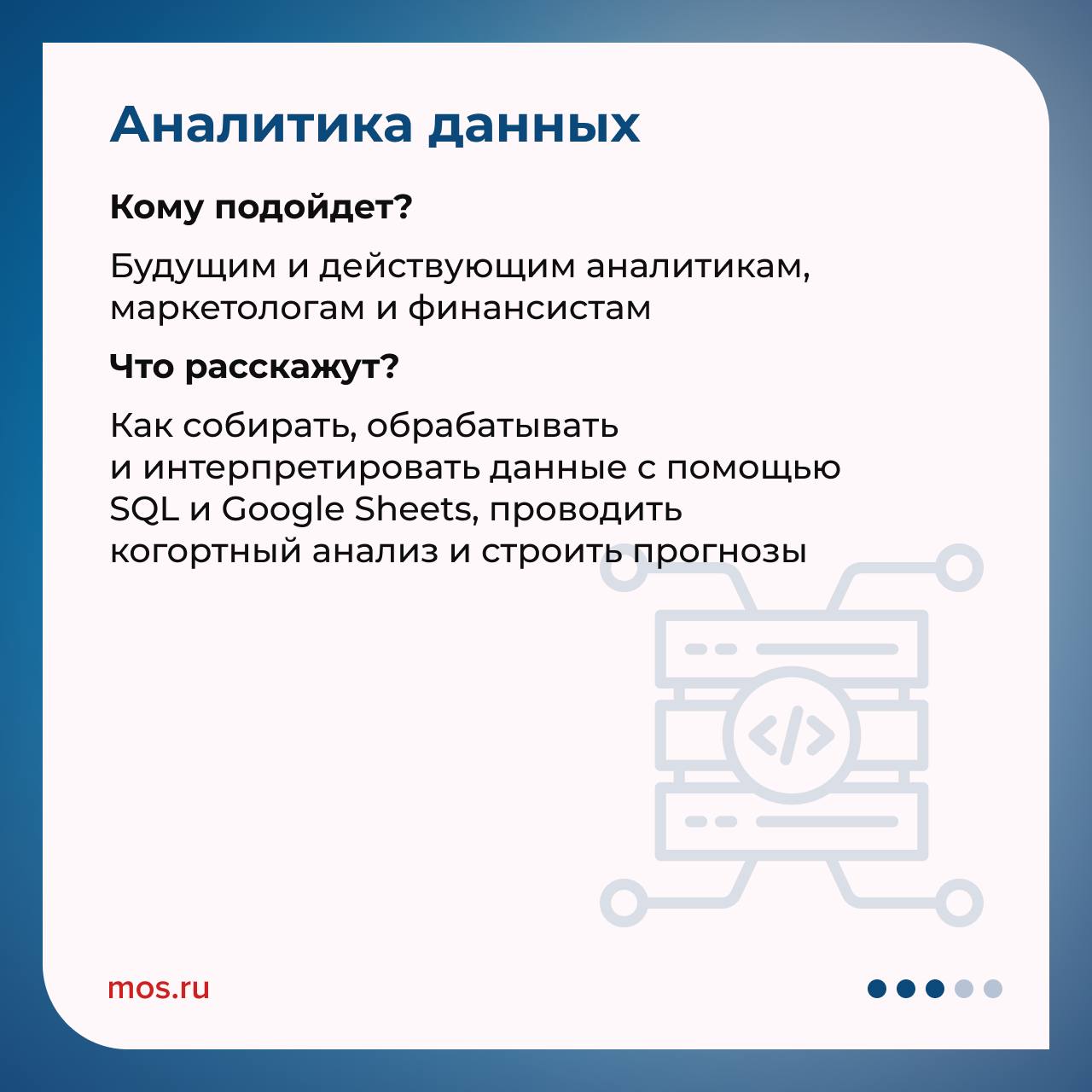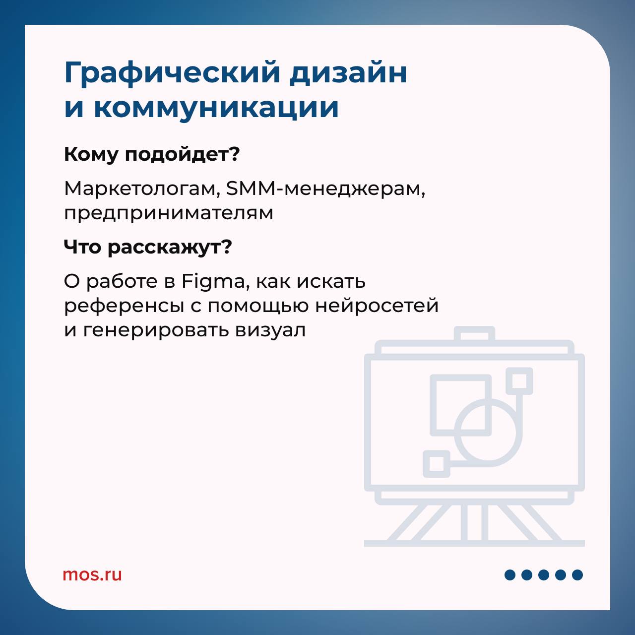 На флагманских курсах «Технограда» на ВДНХ открыт набор на новый поток.С 18 апреля можно бесплатно освоить одну из четырех программ: от аналитики данных до графического дизайна. Для участия необходимо заполнить анкету и отправить видеовизитку. В карточках делимся подробностями о каждом курсе.