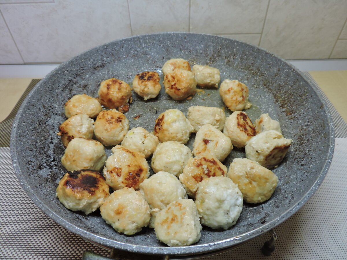 2. Из получившейся смеси формируются небольшие фрикадельки, которые затем обжариваются на растительном масле до золотистой корочки.