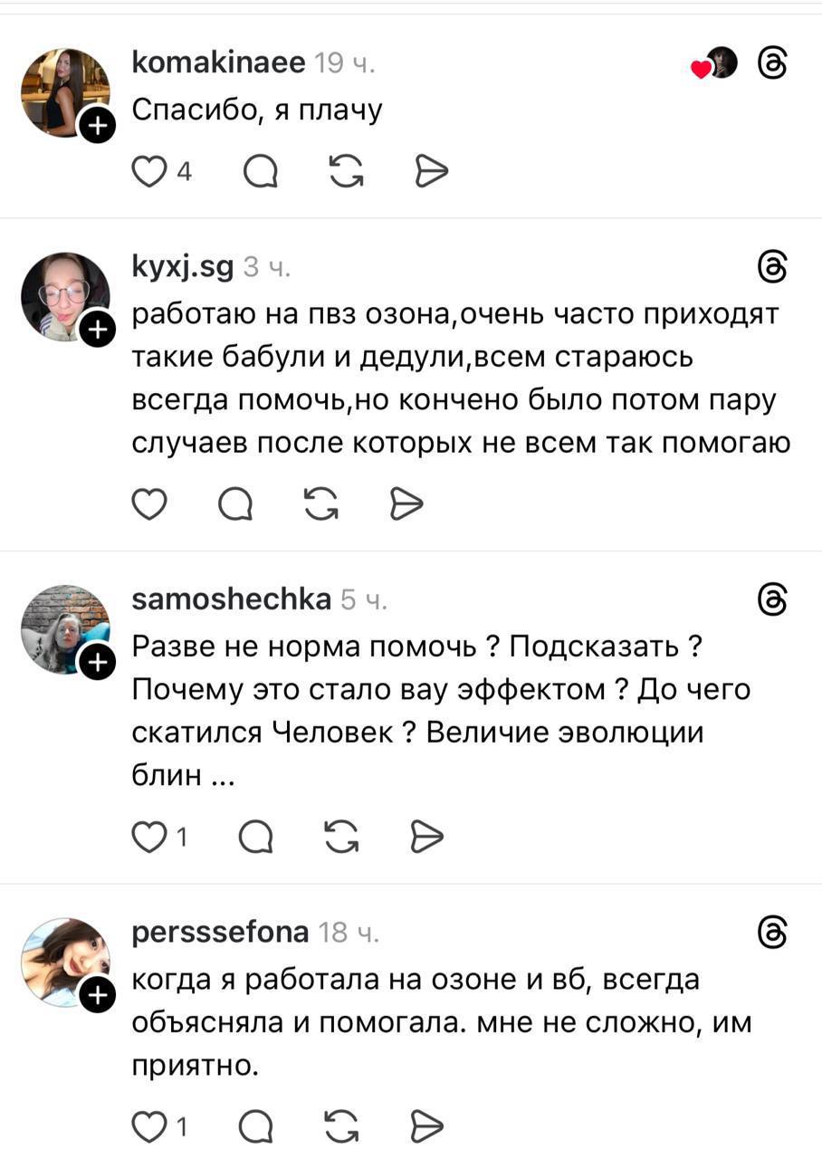 Пенсионерка не знала, как пользоваться приложениями маркетплейсов, и попросила помощи в пункте выдачи. История расторгала пользователей соцсетей. Многие с теплом вспоминают случаи, когда им выпала возможность помочь пожилому человеку.