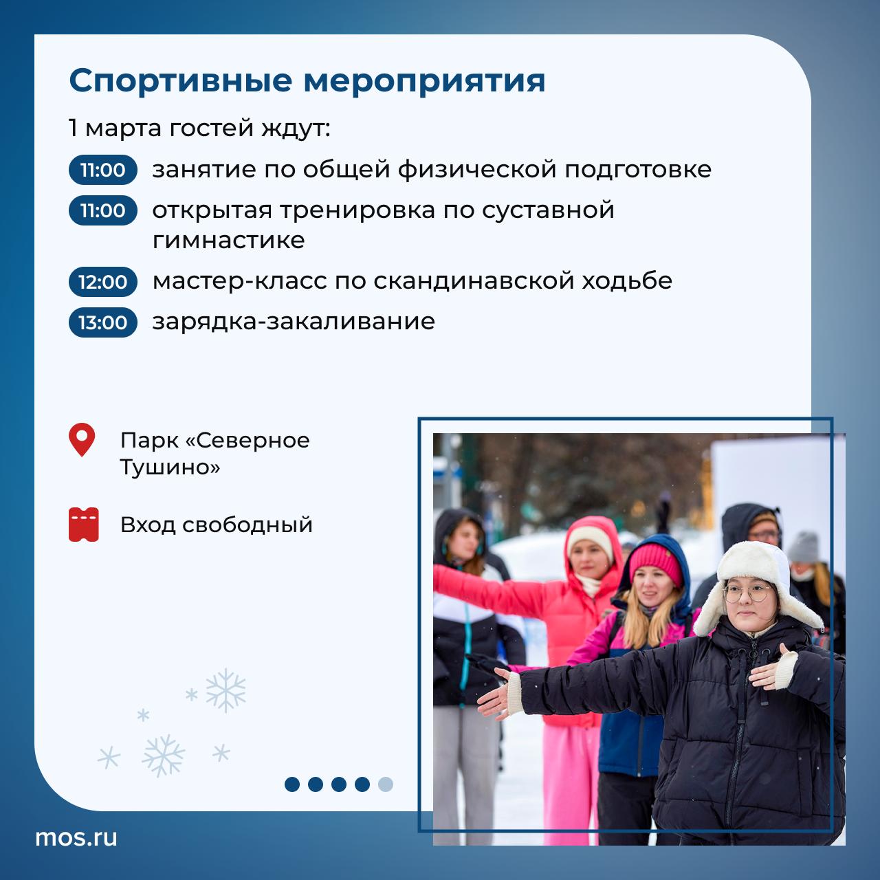 Подкрадывается последний день зимы и первый день весны! В субботу и воскресенье вас ждет множество мастер-классов и спортивных мероприятий. Подробности — в наших карточках.